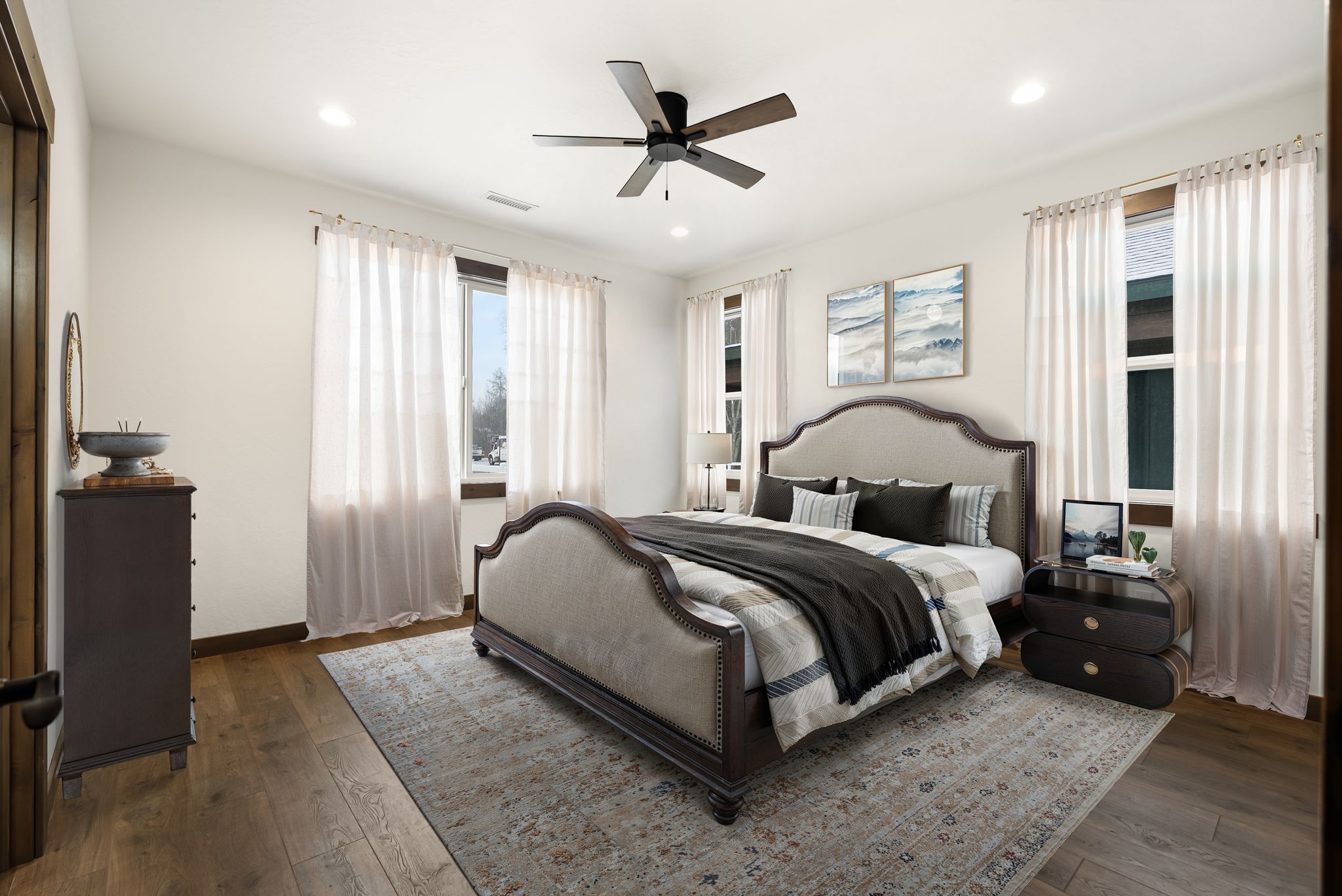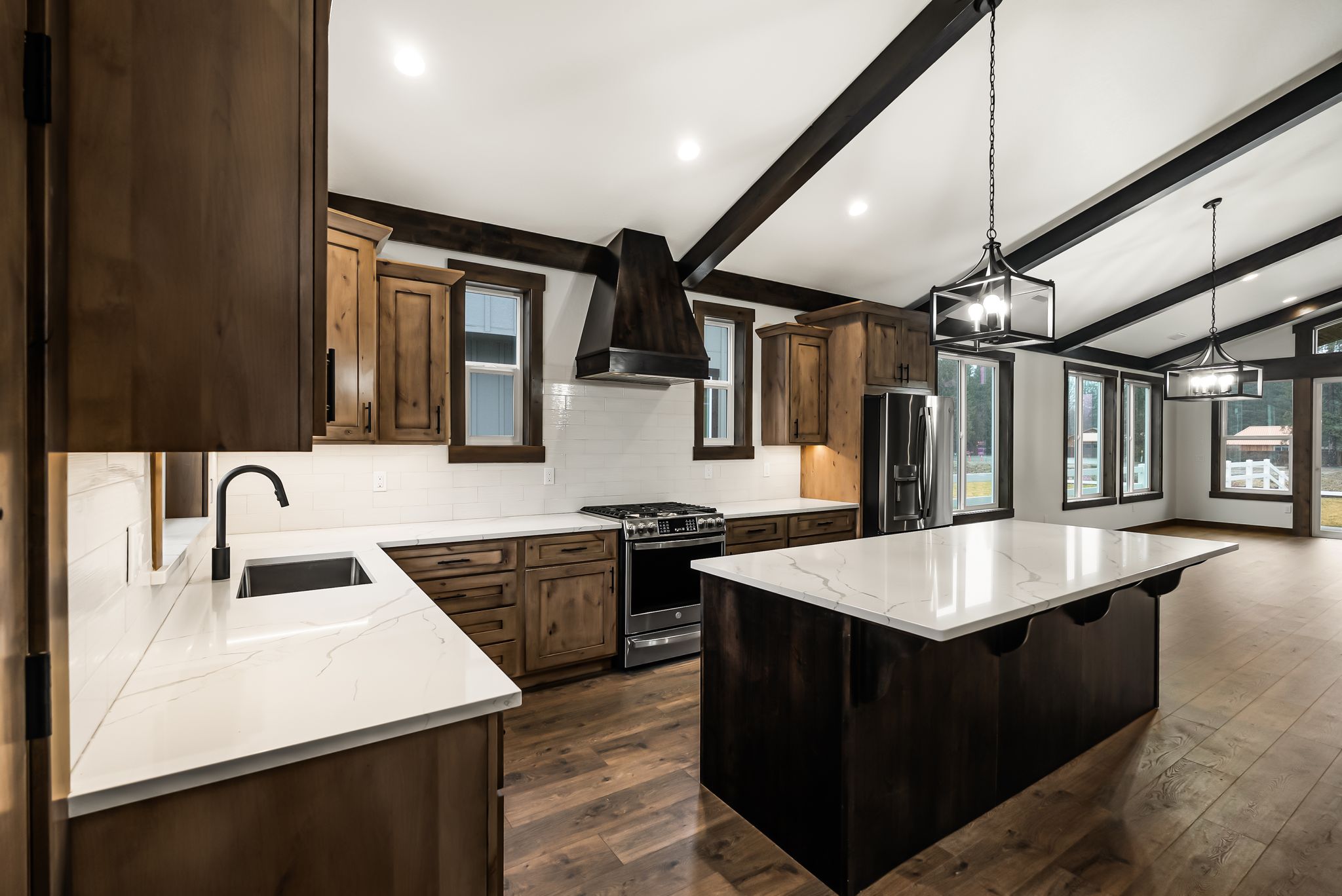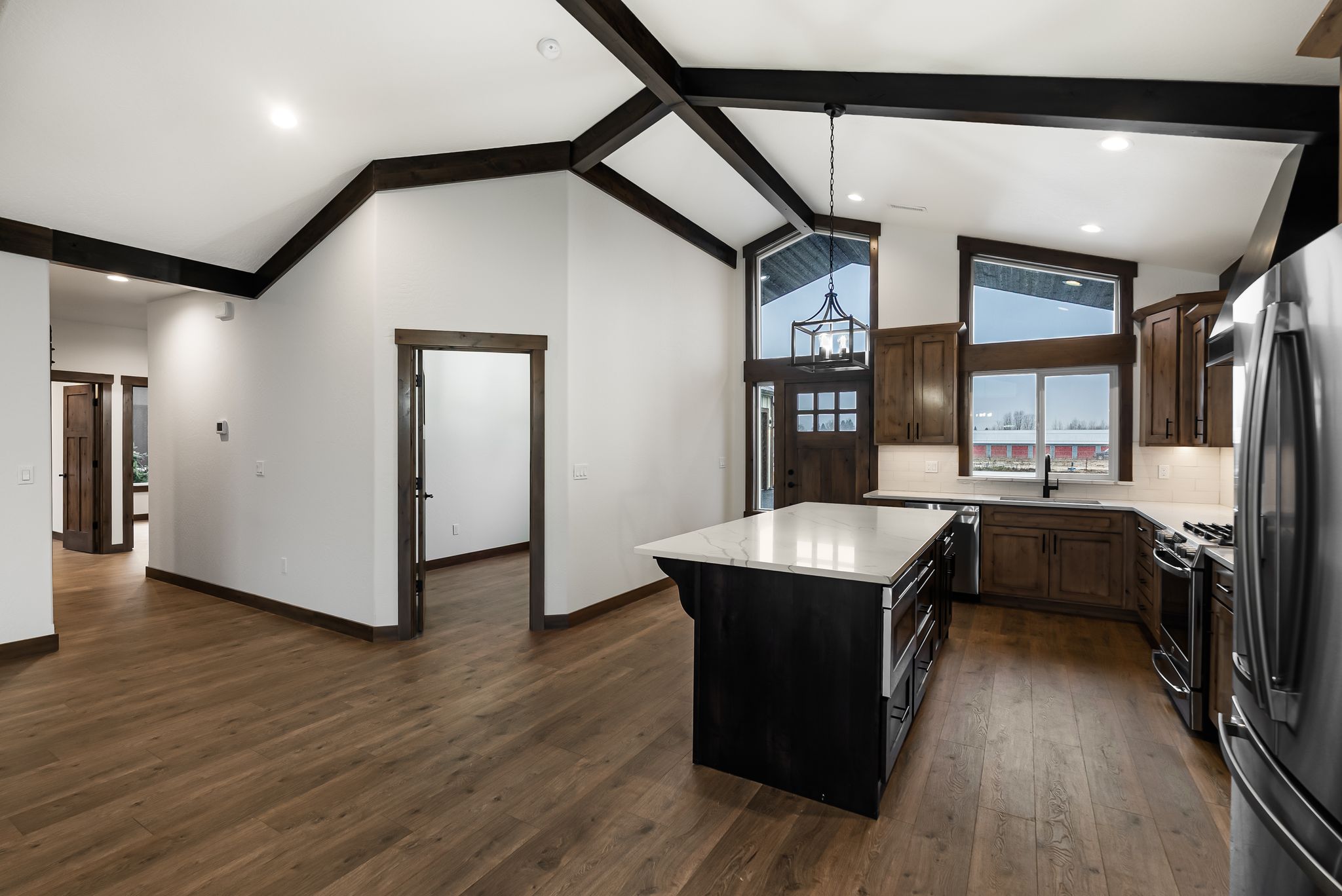 There’s a quiet kind of luxury that lives at The Muley, where morning light filters through soaring windows, and mountain views frame every moment. Set within The Lodges at Providence, just minutes from Sandpoint, this home was designed for those who crave both calm and connection: to nature, to home, to the rhythm of North Idaho living. Vaulted ceilings and a central gas fireplace invite easy evenings and meaningful gatherings, while the open-concept layout flows effortlessly from one warm space to the next. In the kitchen, form meets function with a stunning quartz island, under-cabinet lighting, and custom cabinetry that makes every meal feel like an occasion. The spa-inspired primary suite offers a peaceful retreat with its soaker tub, walk-in tile shower, and generous closet. Outdoors, the covered patio and landscaped yard are perfectly placed for soaking in golden-hour skies. At The Muley, every detail whispers: you’re exactly where you’re meant to be.