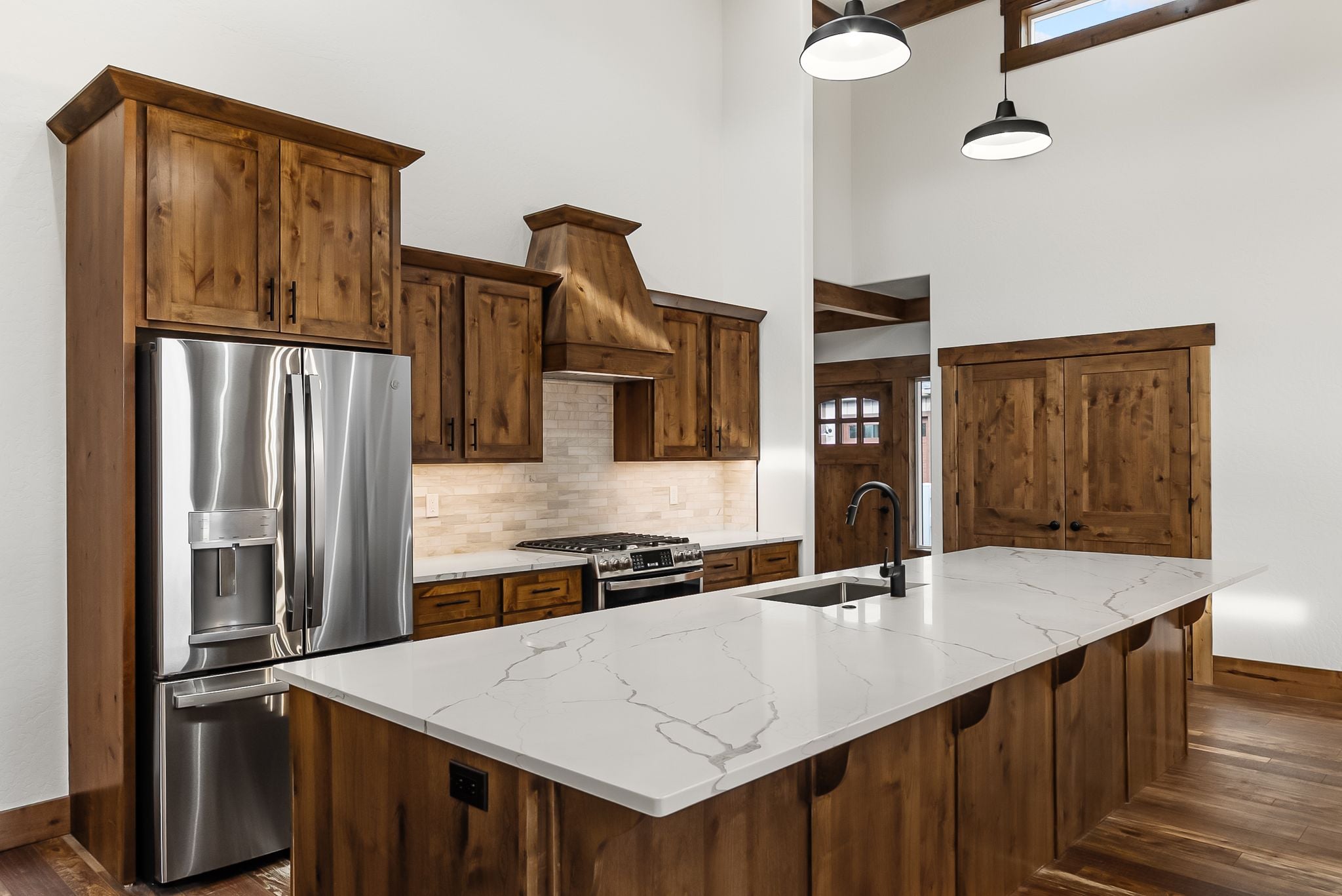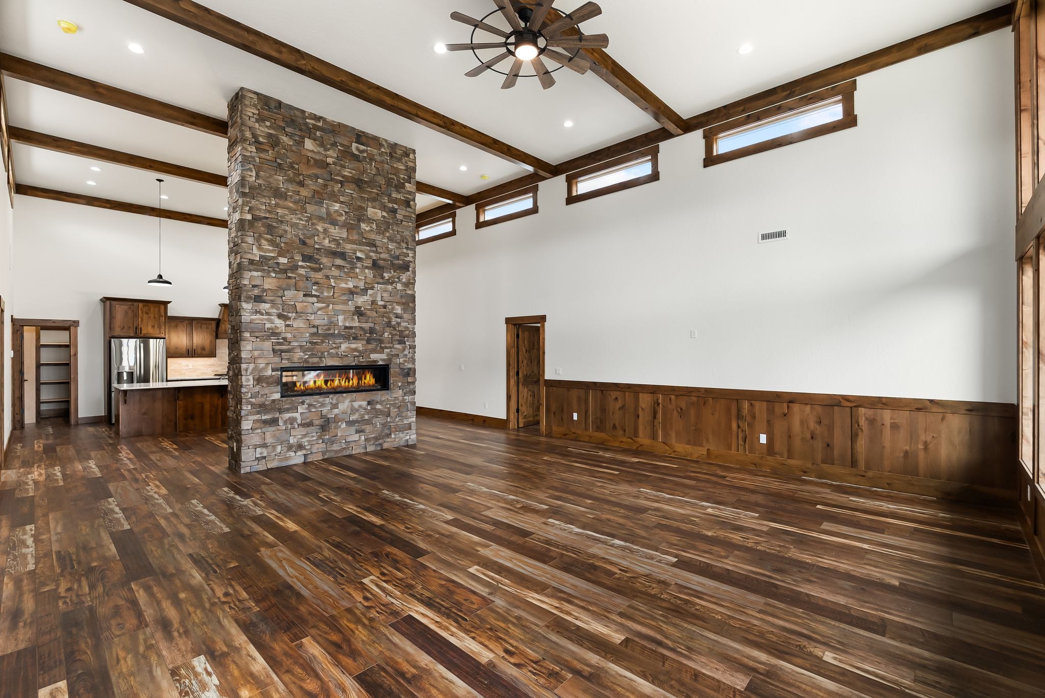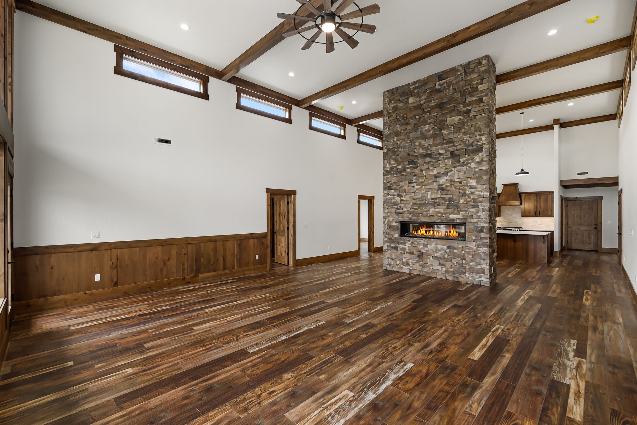 Adventure lives easily at The Barn Owl, where design, function, and the spirit of the outdoors come together in a home that feels both refined and rooted. Set in The Lodges at Providence just outside Sandpoint, this 3-bedroom, 3-bath retreat was built for those who want their home to be as inspiring as the landscape around it. Soaring 16-foot ceilings with wood-wrapped beams and floor-to-ceiling windows flood the space with natural light and views of Schweitzer’s distant peaks. At the heart of the home, a 16-foot-tall stone-clad, double-sided fireplace brings warmth and presence, connecting the living and dining spaces with style and soul. In the kitchen, a 12.5-foot granite island, walk-in pantry, and rich knotty alder cabinetry create a space equally suited for quiet mornings or weekend hosting. The layout includes a Jack and Jill suite and a serene primary retreat. With a 3-bay garage and RV bay, The Barn Owl is more than a home—it’s a basecamp for life well-lived.