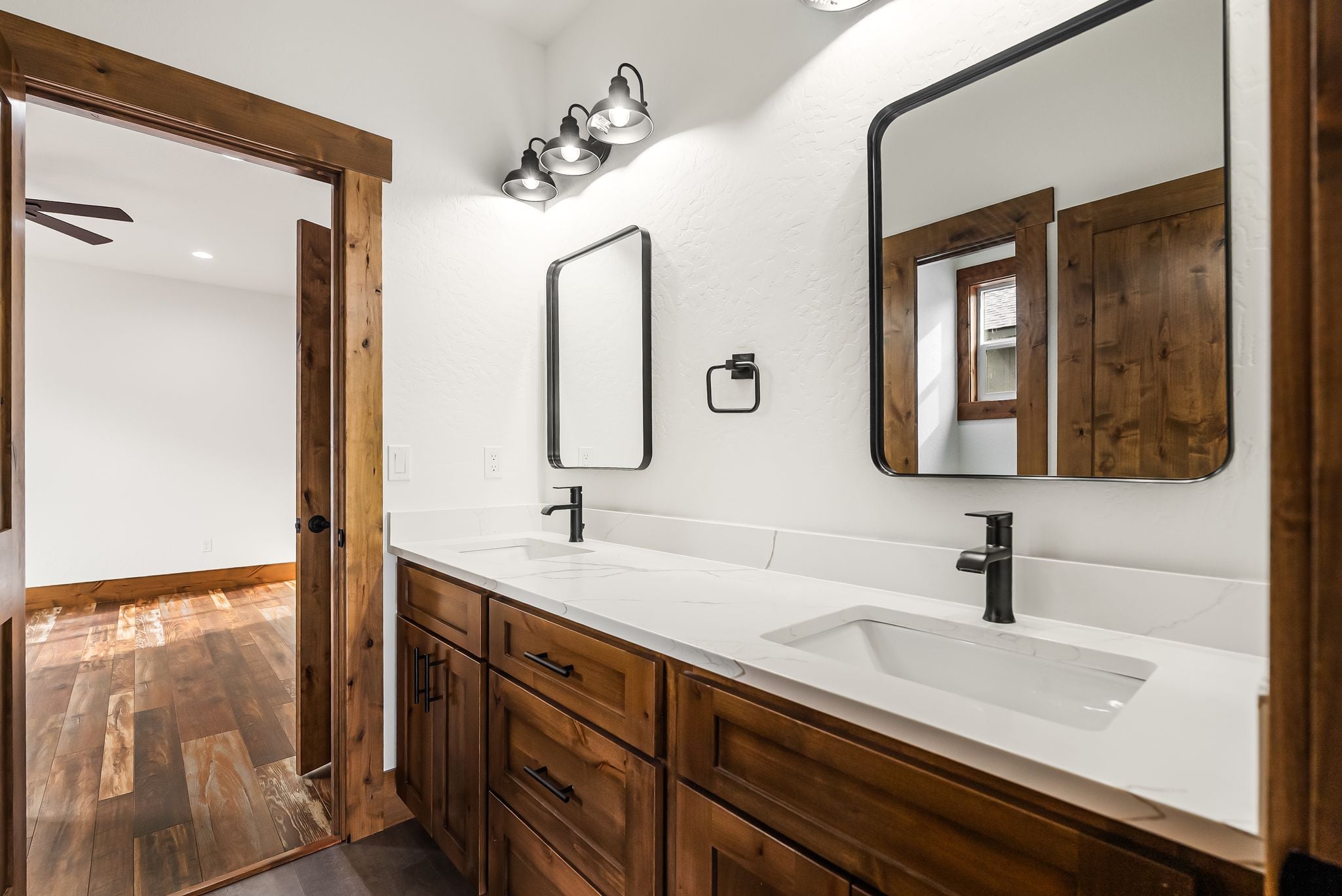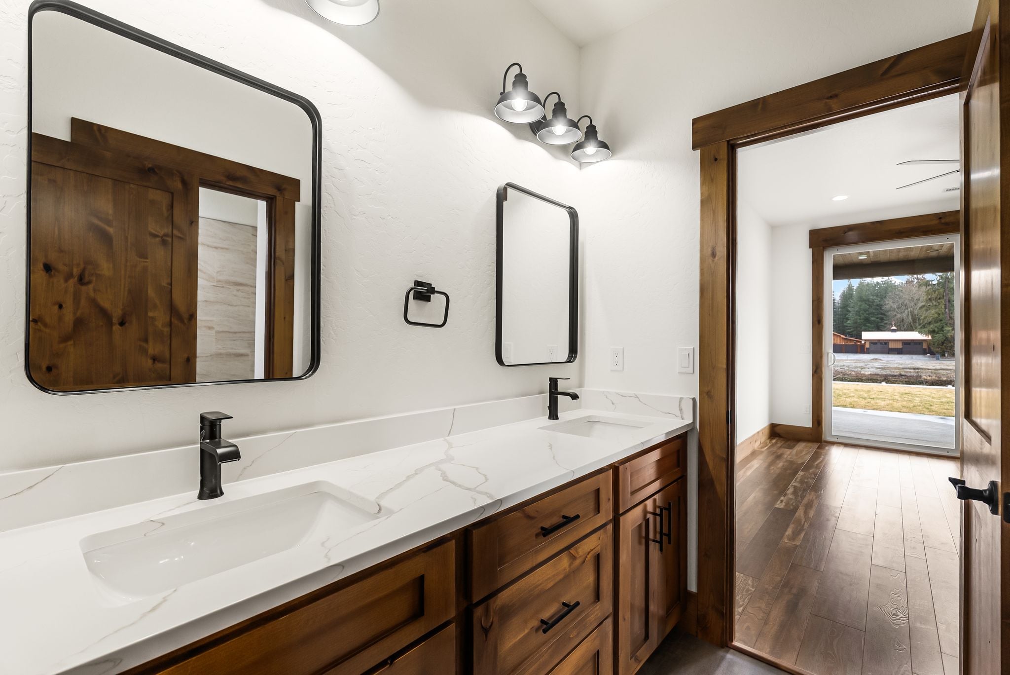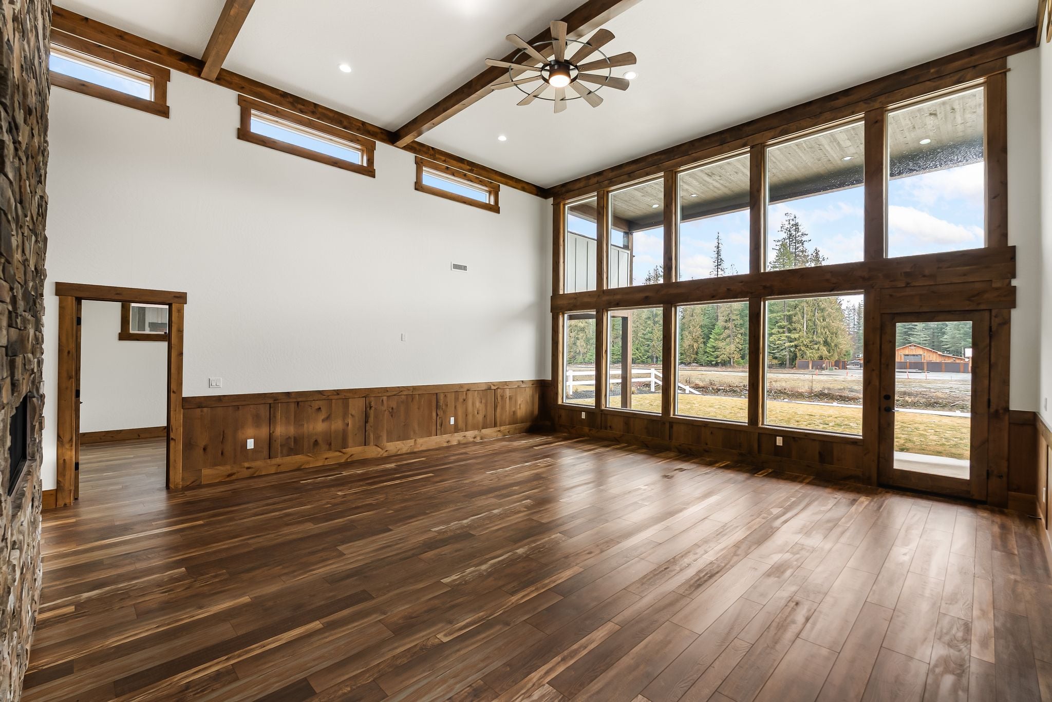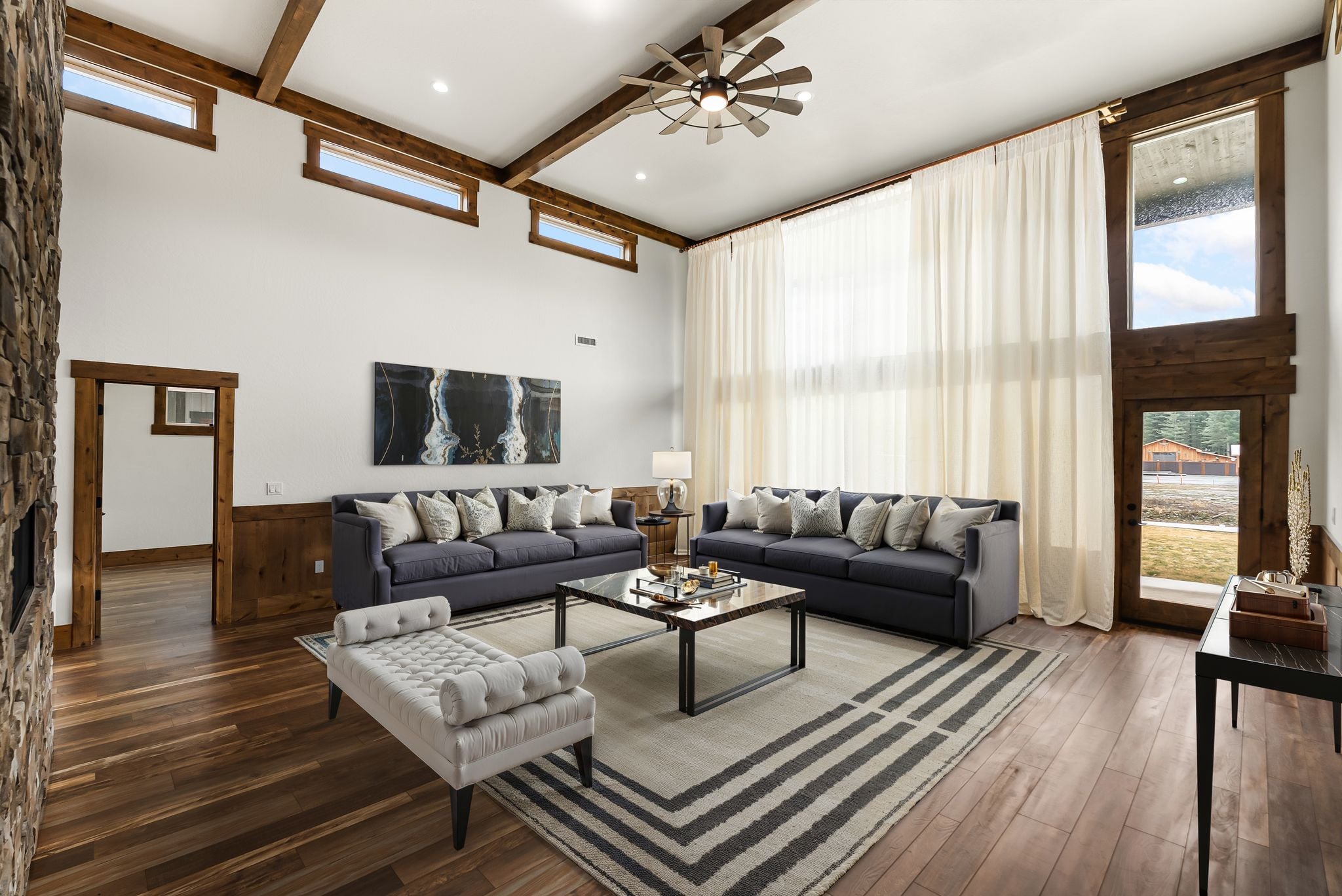 Adventure lives easily at The Barn Owl, where design, function, and the spirit of the outdoors come together in a home that feels both refined and rooted. Set in The Lodges at Providence just outside Sandpoint, this 3-bedroom, 3-bath retreat was built for those who want their home to be as inspiring as the landscape around it. Soaring 16-foot ceilings with wood-wrapped beams and floor-to-ceiling windows flood the space with natural light and views of Schweitzer’s distant peaks. At the heart of the home, a 16-foot-tall stone-clad, double-sided fireplace brings warmth and presence, connecting the living and dining spaces with style and soul. In the kitchen, a 12.5-foot granite island, walk-in pantry, and rich knotty alder cabinetry create a space equally suited for quiet mornings or weekend hosting. The layout includes a Jack and Jill suite and a serene primary retreat. With a 3-bay garage and RV bay, The Barn Owl is more than a home—it’s a basecamp for life well-lived.