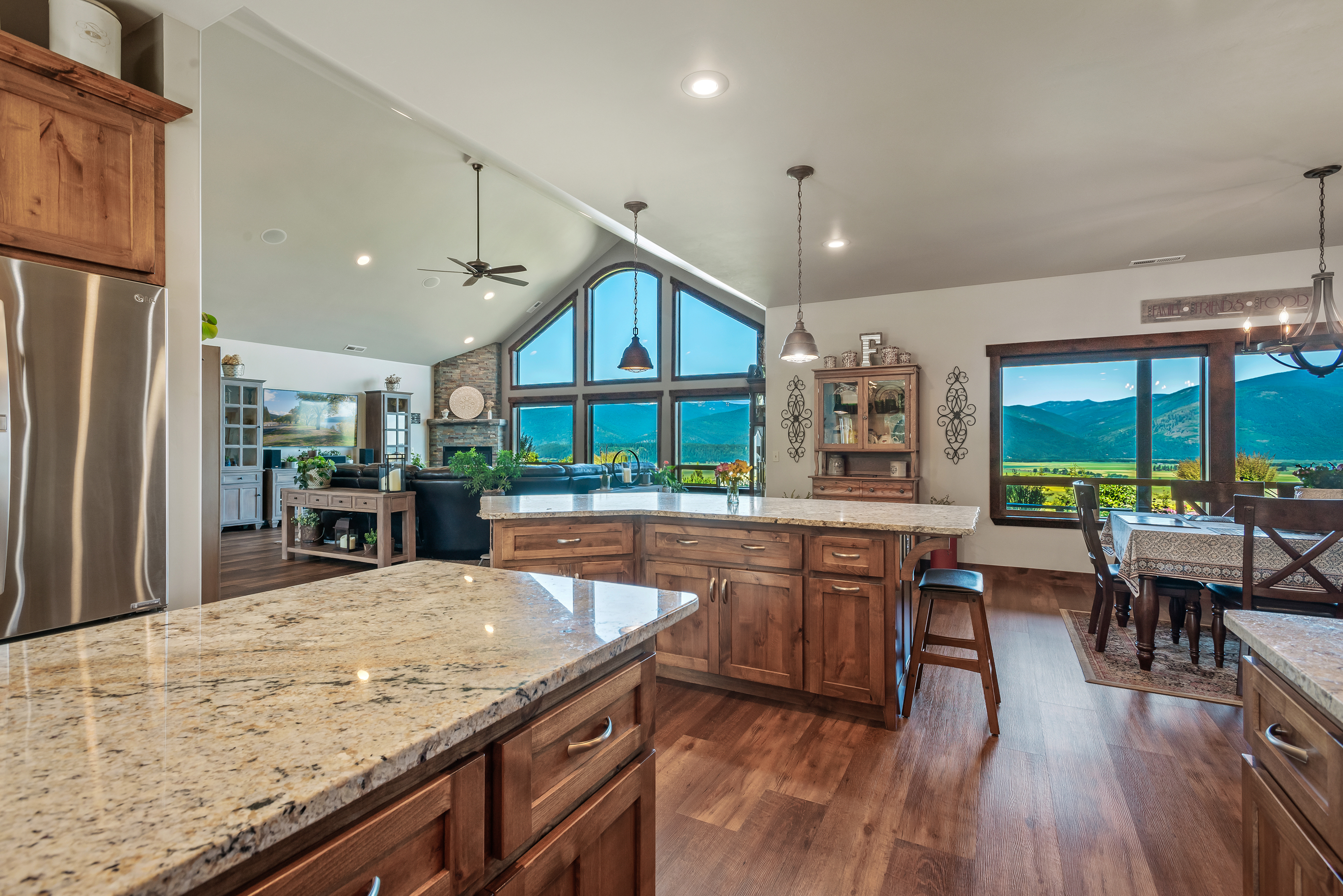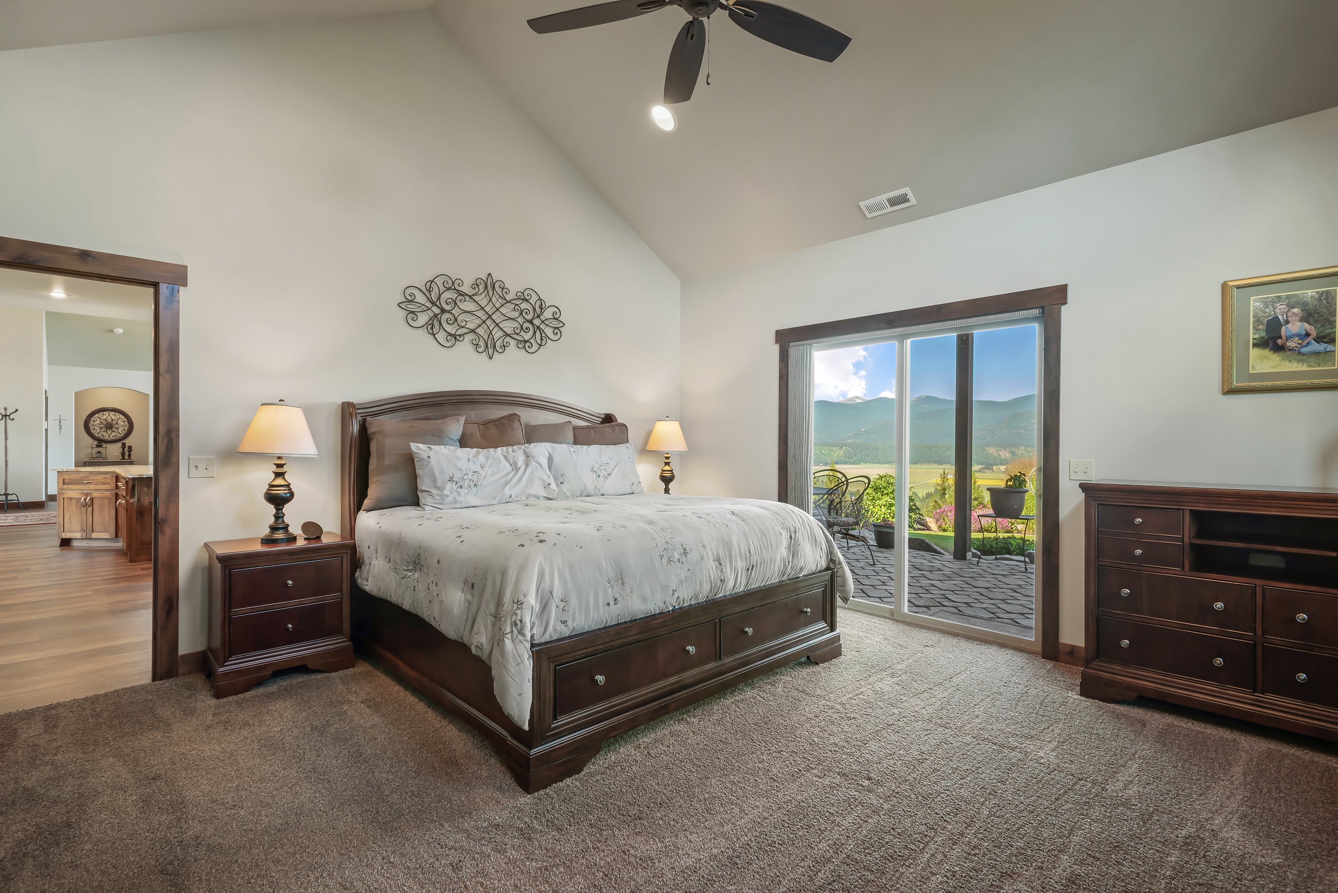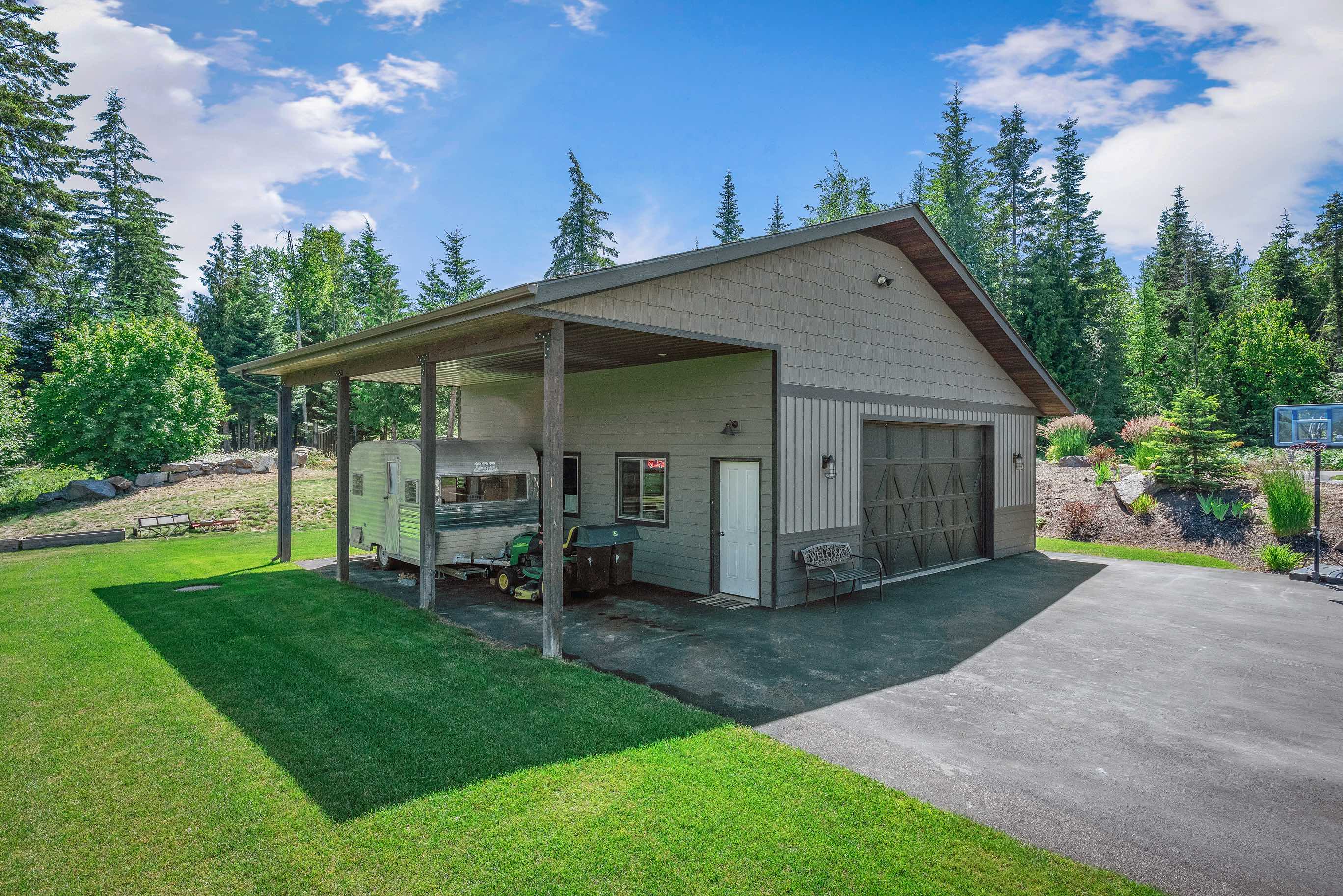 Bonners Ferry's Finest Home. Meticulously maintained with magnificent 180 degree valley views, oversized 2-car attached garage & large 30x30 shop all on 5 acres. Not only do you get some of the best views in North Idaho, you can enjoy the professionally landscape around the home (underground irrigation!) creating a ''I cant believe I live here'' feeling. After driving up to the home on a paved driveway, a covered front porch welcomes you into the main floor living space, open concept, vaulted ceilings, LPV floors, spacious kitchen with granite countertops, stainless steel appliances, & double island with bar seating. Perfect for family gatherings & entertainment. The master suite is spacious, has a large walk in closet which leads directly into the laundry room, walk in shower and his/her vanities. The two additional bedrooms are on the opposite side of the master suite with a Jack-and-Jill Bathroom. Bonus room above the garage has potential to turn into a second master bedroom.